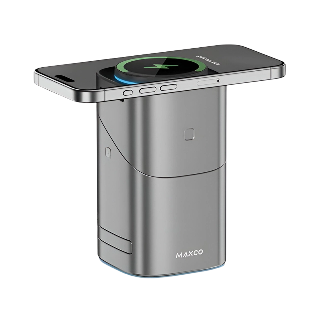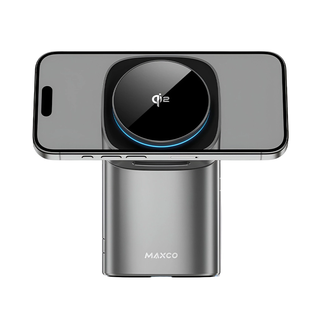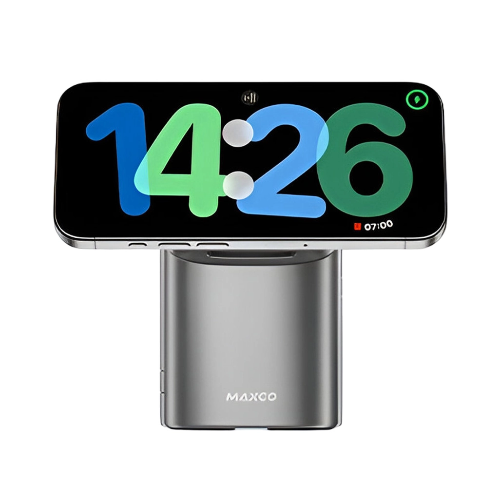 استند و شارژر وایرلس مکسکو مدل MW15 یک ابزار کاربردی و مدرن است که هم به عنوان پایه نگهدارنده گوشی و هم به عنوان شارژر بیسیم عمل میکند. این محصول با طراحی تاشو و قابلیت حمل آسان، مناسب استفاده در خانه، محل کار یا سفر است