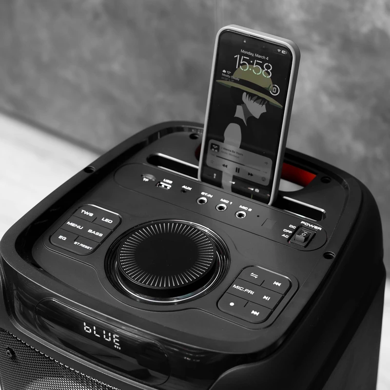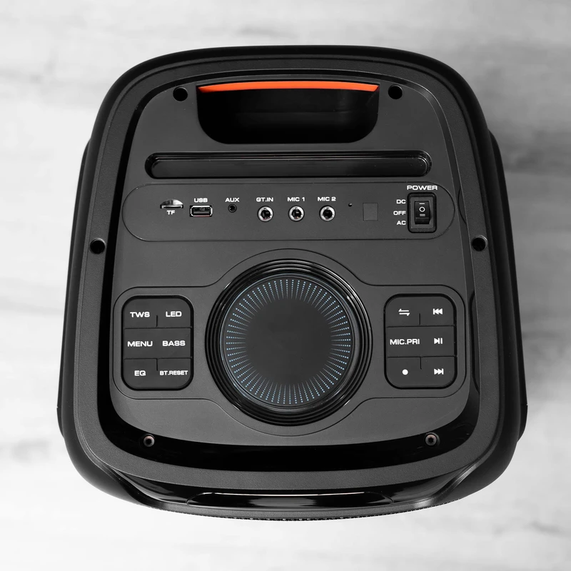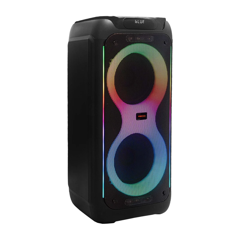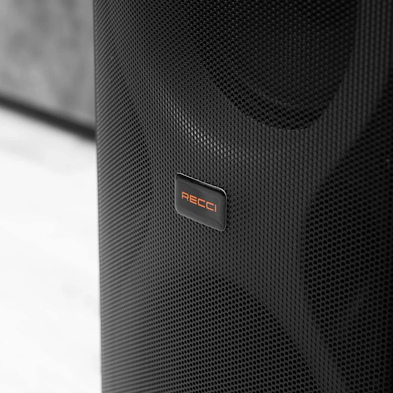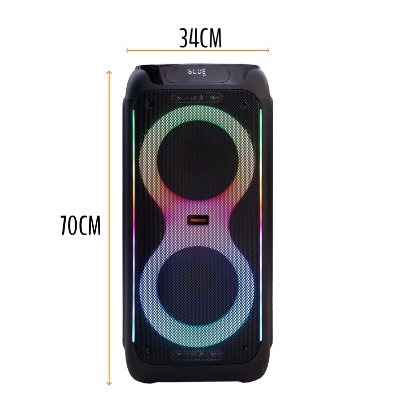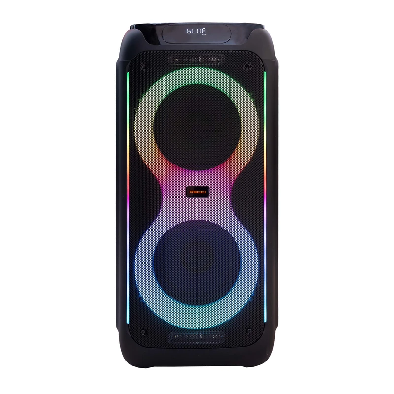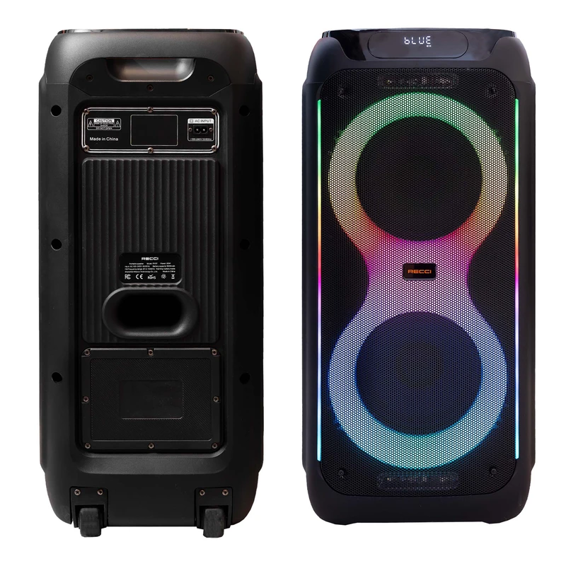 اسپیکر بلوتوثی چمدانی RECCi مدل RY07 گزینه‌ای عالی برای افرادی است که به صدایی با توان بالا و کاربرد چندمنظوره نیاز دارند. این اسپیکر ۸۰ واتی، همراه با باتری ۵۰۰۰ میلی‌آمپرساعتی، مناسب برای پخش موسیقی در فضای باز و فضای بسته است