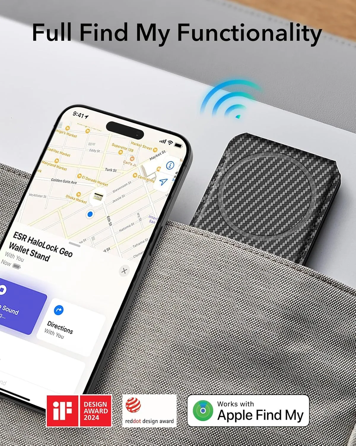 ویژگی‌ هاباتری قابل شارژ, دارای حلقه انگشتی, ظرفیت کارت: 1 الی 3 کارت, قابل تنظیم از 15 تا 170 درجه, قابلیت استند, مدت زمان بازدهی باتری: 3 ماه با یک بار شارژ 1.5 ساعته, نکته: عدم قابلیت استفاده از Apple Find My با شماره‌های همراه اپراتورهای ایران