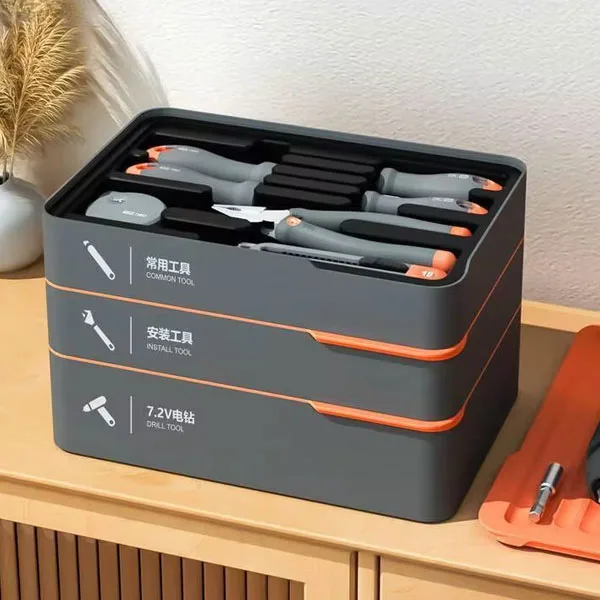 در این جعبه ابزار کامل همه کاره مدل چهار طبقه ADEF، مجموعهای از ابزارهای ضروری برای کارهای مختلف از جمله تعمیرات ساده، مونتاژ مبلمان، لولهکشی و کارهای برقی به صورت سازماندهیشده قرار گرفتهاند. طراحی مدولار آن به شما این امکان را میدهد که ابزارها را به راحتی مرتب کرده و از دسترسی سریع به آنها بهرهمند شوید. با این سیستم، هیچوقت نگران گم شدن یا آسیب دیدن ابزارها نخواهید بود، چرا که هر کدام جایگاه مخصوص به خود را دارند.