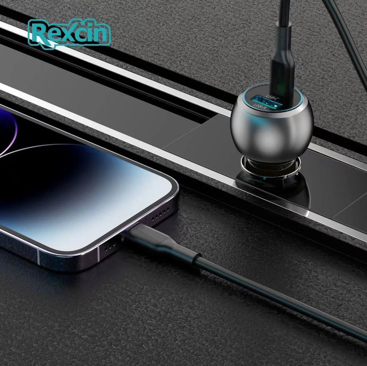 شارژر فندکی رکسین مدل REX-CC1 مجهز به دو پورت خروجی (USB-A و USB-C) با پشتیبانی از فناوری شارژ سریع (QC و PD) است. این ویژگی امکان شارژ هم‌زمان دو دستگاه با توان بالا را فراهم می‌کند، بدون آن‌که افت سرعت یا ولتاژ ایجاد شود.