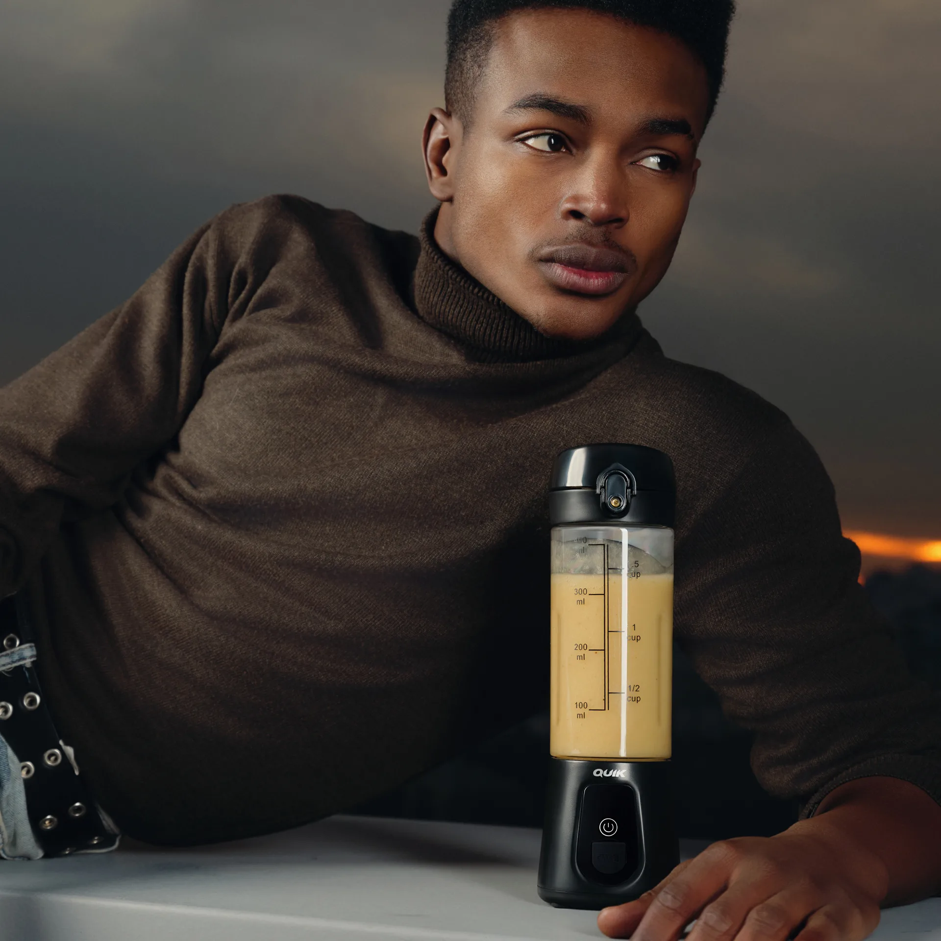 بدنهی شیکر از پلاستیک فشرده درجه یک و فاقد BPA ساخته شده است که ایمنی و سلامت نوشیدنیها را تضمین میکند. طراحی ضد نشت آن، خیال شما را از بابت حمل بدون دردسر در کیف یا کولهپشتی راحت میکند. باتری داخلی با ظرفیت ۳۰۰۰ میلیآمپر ساعت، قابلیت شارژ با درگاه USB-C را دارد و شما را از استفاده از برق مستقیم بینیاز میسازد.