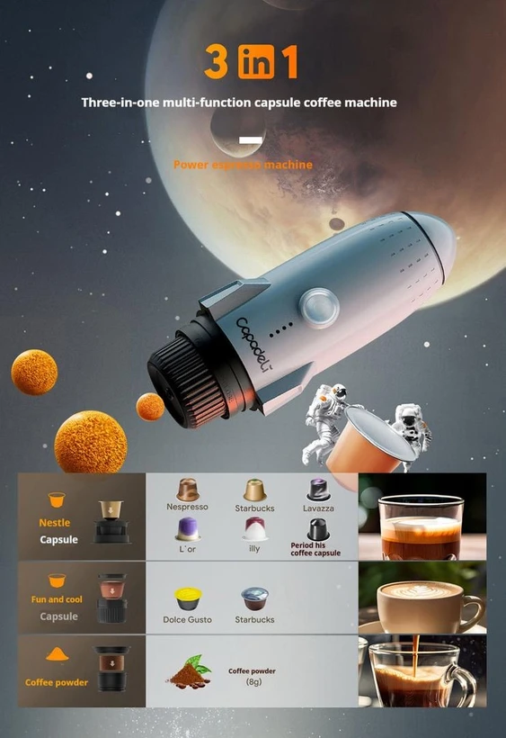 از جمله ویژگی های برجسته قهوه ساز شارژی کاپادلی مدل ME2409 می توان به برند معتبر CAPADELI، مدل ME2409، وزن مناسب 834 گرم و بدنه فولاد ضد زنگ اشاره کرد. قهوه ساز شارژی کاپادلی مدل ME2409 دارای منبع انرژی باتری داخلی با ظرفیت 7800 میلی آمپر است که امکان استفاده بدون نیاز به پریز را فراهم می کند. ظرفیت مخزن آب 80 میلی لیتر و ظرفیت فنجان 250 میلی لیتر، به کاربر اجازه می دهد همزمان چند فنجان قهوه یا اسپرسو آماده کند. قابلیت استفاده هم با آب سرد و هم آب گرم، و همچنین سازگاری با پودر قهوه، قرص نسپرسو و قرص Dolce gusto، از دیگر مزایای قهوه ساز شارژی کاپادلی مدل ME2409 است. دمای استخراج 92 درجه سانتی گراد، فشار 19 بار و قابلیت استخراج طعم حرفه ای اسپرسو با کرمای غلیظ، این دستگاه را به یک ابزار حرفه ای برای دوستداران قهوه تبدیل کرده است.