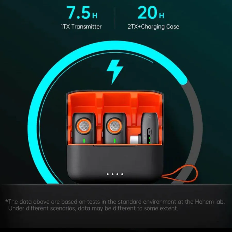 میکروفون بی‌سیم HOHEM مدل MIC‑01 انتخابی مناسب برای کاربران حرفه‌ای و علاقه‌مندان به تولید محتواست. این سیستم شامل دو فرستنده (TX) و یک گیرنده (RX) است و با بلوتوث 2.4 GHz اتصال مطمئن تا فاصله ۲۰ متر در محیط و ۱۰۰ متر در دید مستقیم را فراهم می‌کند. وضوح نمونه‌برداری 48 kHz و نرخ سیگنال به نویز 64dB، صدایی شفاف و بدون نویز برای ضبط ارائه می‌دهد