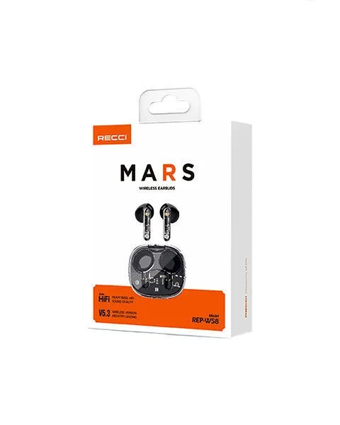 هندزفری بیسیم RECCi مدل REP‑W58 با فناوری بلوتوث ۵.۳ اتصال سریع و بدون قطعی را فراهم میکند . بدنه شفاف و سبک آن طراحی خاصی دارد که توجه را جلب میکند . این مدل قابلیت شارژ با درگاه USB Type‑C را دارد که تنها در ۲ ساعت کامل میشود و امکان پخش موسیقی تا ۴ ساعت را فراهم میسازد