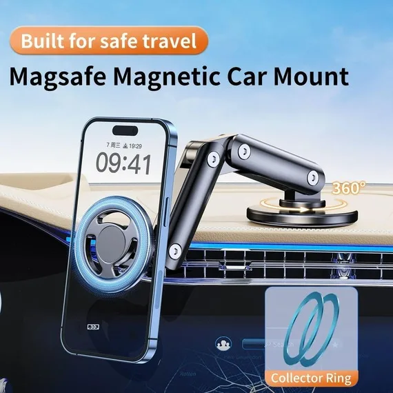 پایه نگهدارنده گوشی موبایل مدل BMH‑50 با طراحی تاشو و قابلیت چرخش ۳۶۰ درجه، استفاده آسان در خودرو را ممکن میسازد. این نگهدارنده از مگنت قوی بهرهمند است که حتی در مسیرهای پر دستانداز هم گوشی را محکم نگه میدارد. همچنین با گوشیهای سازگار با MagSafe مانند آیفون ۱۲ به بالا همخوانی دارد
