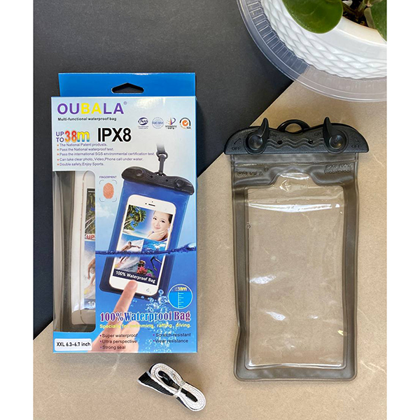 کاور OUBALA دارای گواهینامه ضد آب استاندارد است و گوشی شما را در برابر نفوذ آب هنگام شنا، قایق‌سواری، دوچرخه‌سواری در باران یا حتی ماجراجویی در طبیعت محافظت می‌کند. به‌علاوه، طراحی شفاف پنجره جلو، امکان استفاده کامل از صفحه لمسی و دوربین را نیز فراهم کرده و نیازی به خارج‌کردن گوشی از داخل کاور نیست.