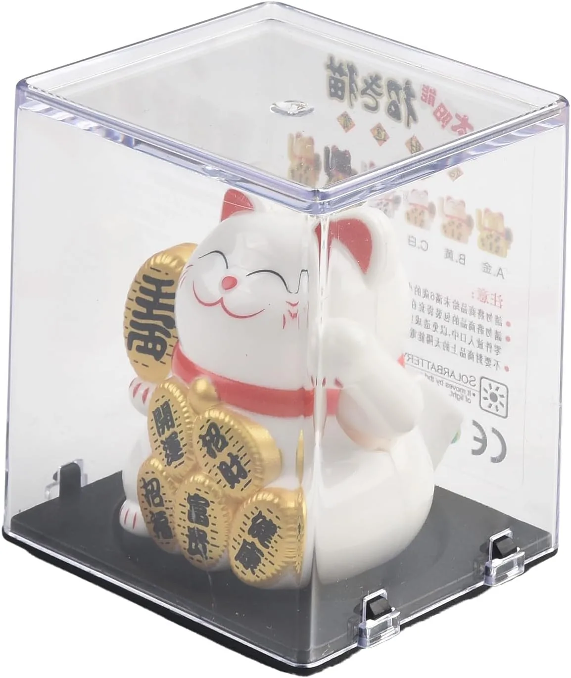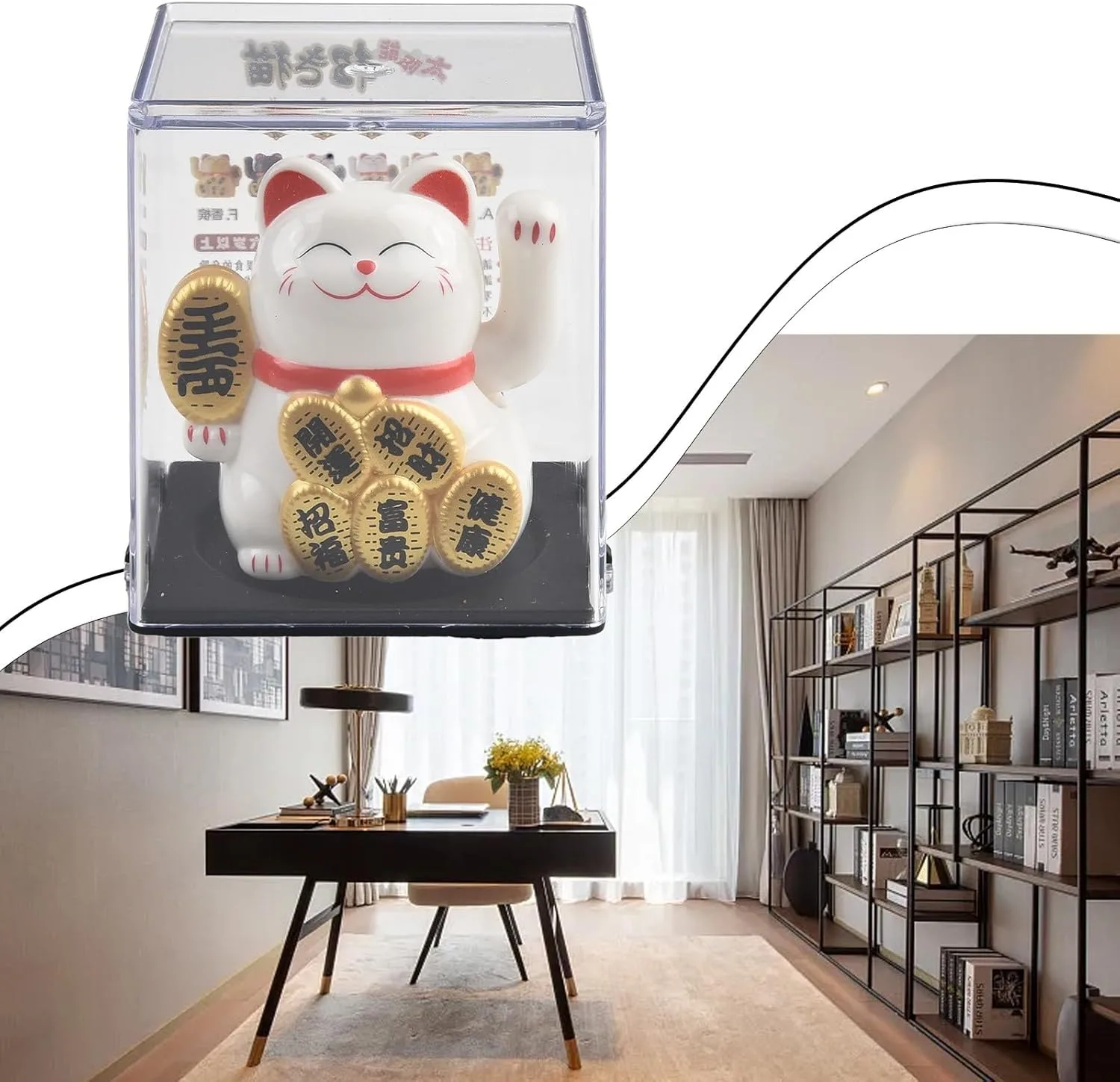 این گربه فنگشویی با پنل خورشیدی داخلی خود، در نور مستقیم یا غیرمستقیم محیط فعال میشود و دست خود را بالا و پایین میبرد. این حرکت نماد دعوت مشتری، جذب ثروت و انرژی مثبت است. همچنین بهعنوان یک آیتم دکوری، جلوهای سنتی و در عین حال دلنشین به فضا میبخشد.