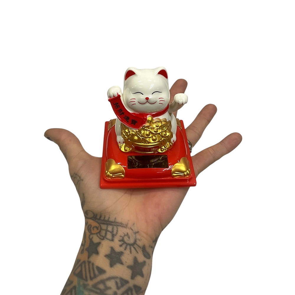 مکانیزم حرکتی این گربه شانس بر اساس نور خورشید یا نور مصنوعی عمل می‌کند؛ بنابراین نیازی به باتری نداشته و همواره فعال باقی می‌ماند. تنها کافی‌ست آن را در محل پرنور قرار دهید تا دست آن شروع به تکان دادن کند.