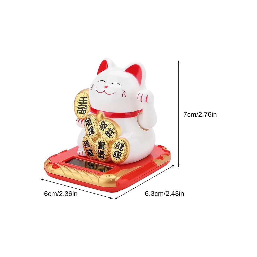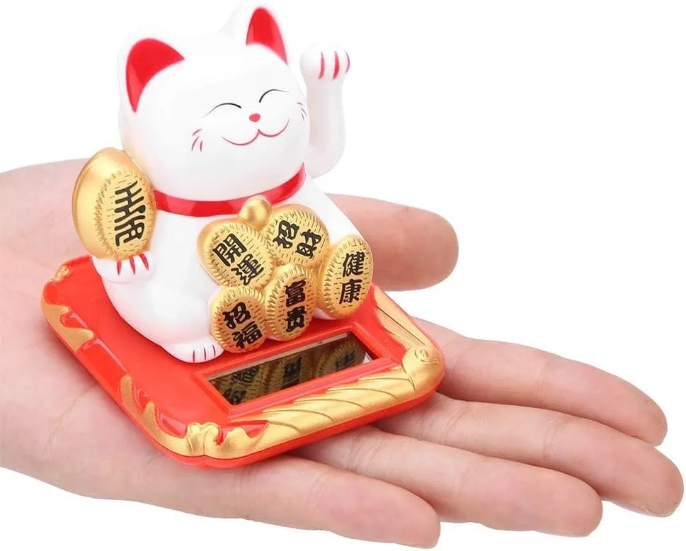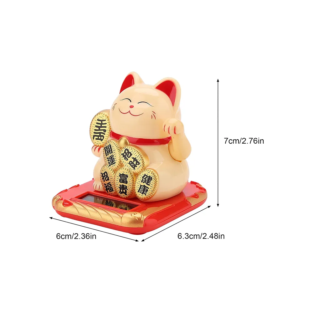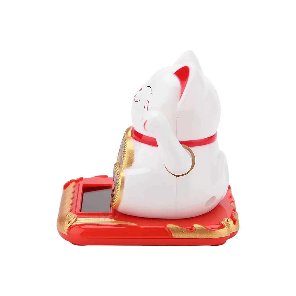 این گربه شانس دارای یک پنل خورشیدی کوچک در قسمت پایین خود است که بدون نیاز به باتری، تنها با نور محیط فعال میشود. دست گربه به صورت خودکار به نشانه دعوت خوششانسی حرکت میکند. طراحی با جزئیات بالا و رنگآمیزی دقیق، زیبایی خاصی به دکوراسیون داخلی میبخشد.