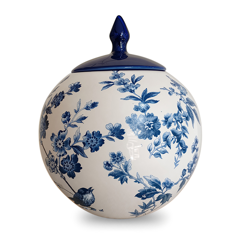 جینجر جار سرامیکی طرح گل و پرنده آبی سفید