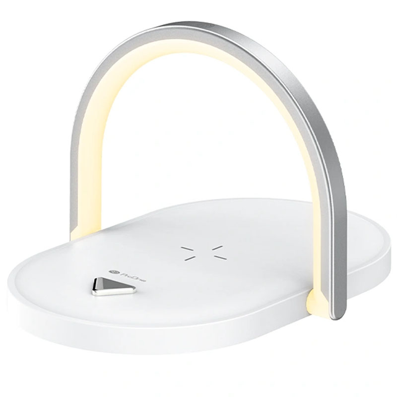 قابلیتها | پشتیبانی از شارژ سریع، سازگار با گوشیهای مجهز به فناوری شارژ بیسیم (Qi) , چراغ LED ( با توان 3 وات) و قابلیت تنظیم در ۳ سطح نور، طراحی چندکاره با بازوی متحرک ۱۸۰ درجه، کنترل لمسی نور، فاصله شارژ کمتر از ۱۰ میلیمتر، طراحی خاص برای استفاده روی میز خواب یا میز کار، محافظت در برابر دما و جریان اضافی، پایه ضدلغزش |
