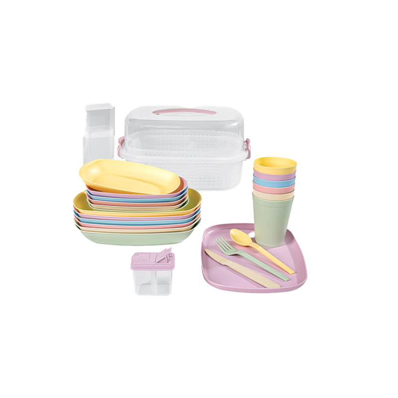 - کامل و کاربردی – شامل بشقاب، کاسه، لیوان و لوازم سرو غذا برای سفر و پیکنیک.